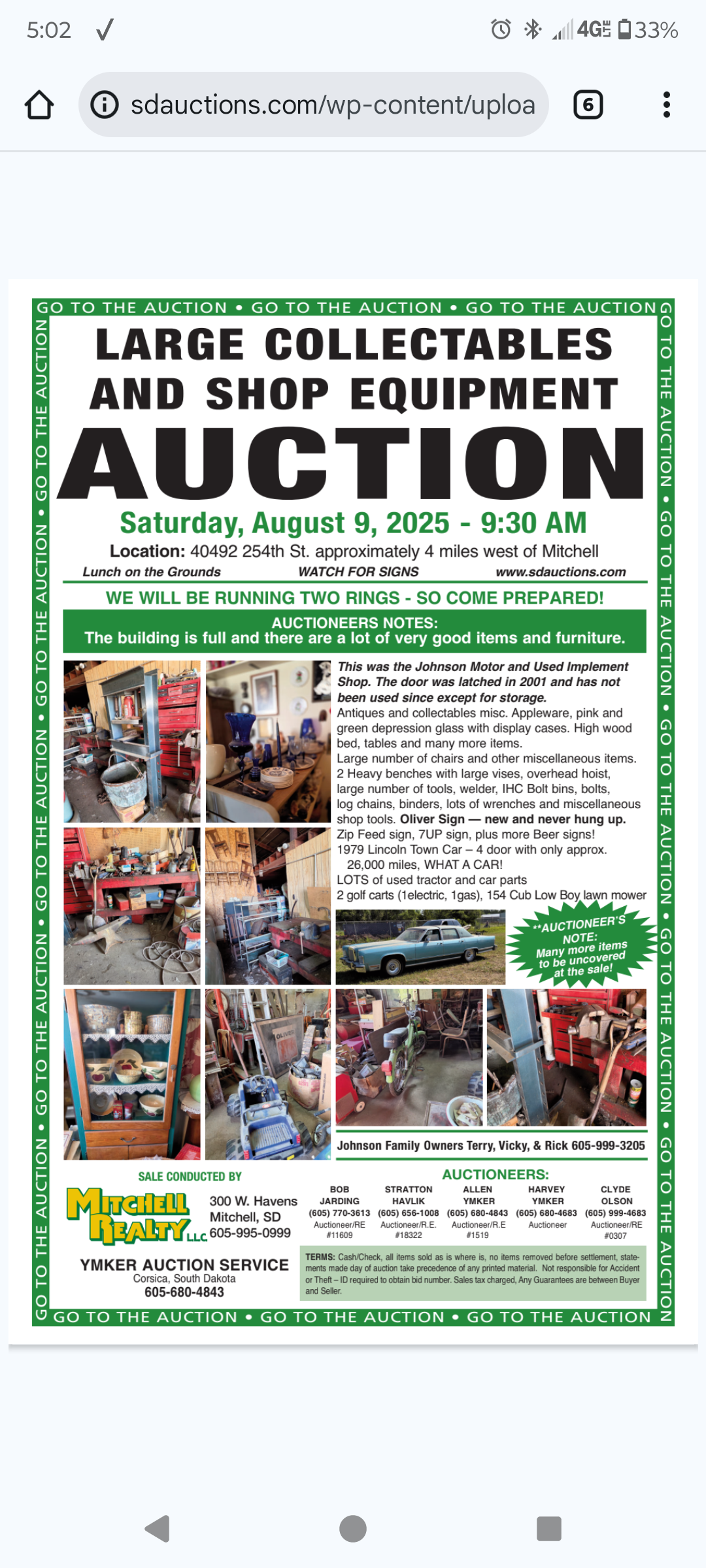 Saturday, Aug 9, - Mitchell, SD, the old Johnson Motor & Used Implement - 40492 254th St